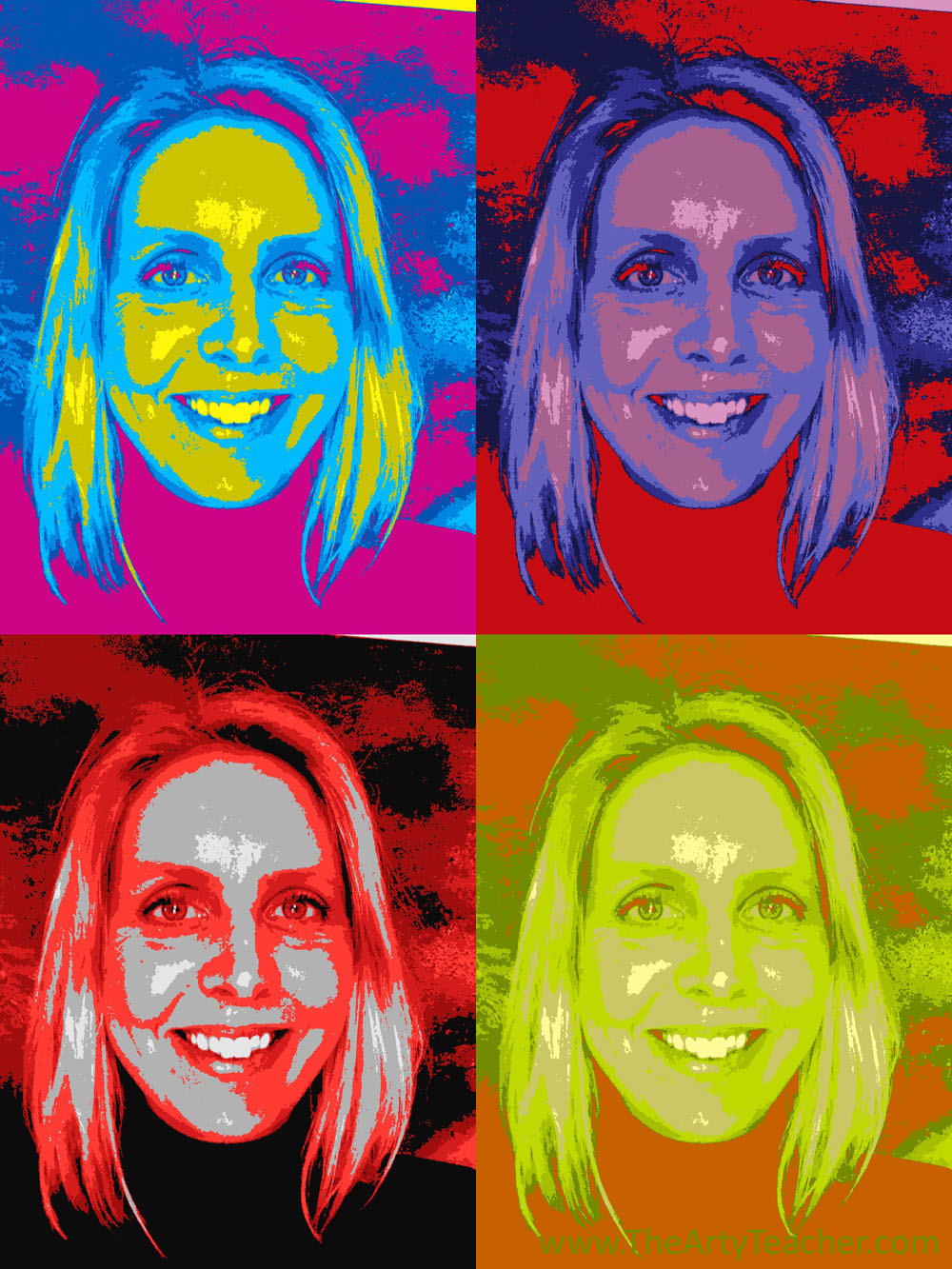 Then chose something from the ideas for this afternoon. I like the idea of trying the images we did on the computer based on Andy Warhol. You take a picture and adapt it to make 4 different images, using colour and texture. You could easily do this on paper, just make your first pictures all the same and then change each one. I've added an example to remind you.
