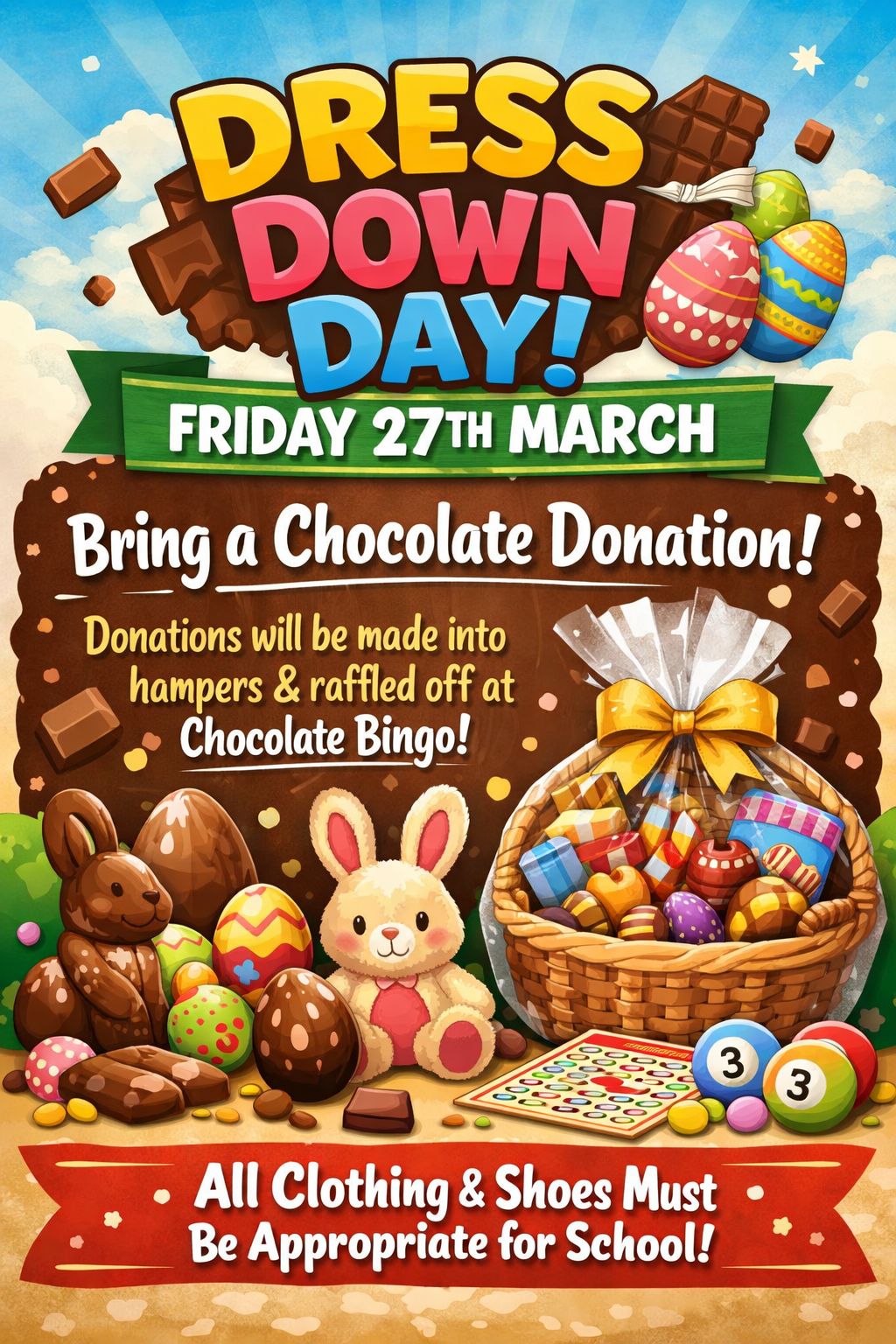 PTA Chocolate Bingo/Dress Down Day - please find attached a poster with information for the PTA's Chocolate Bingo event on Friday 27th March. The children are invited to come to school in non-uniform on this day in exchange for a chocolate donation for the Bingo.